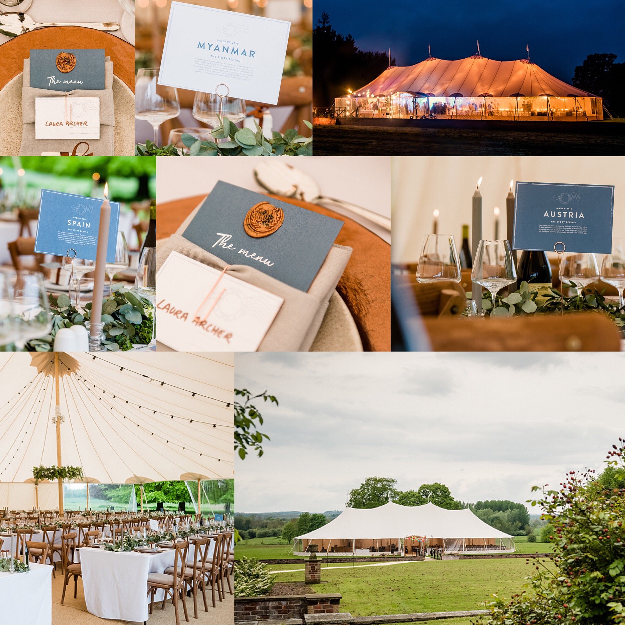 I was inspired to create this ‘A Touch of Tuscany’ look for the PapaKåta Autumn Open Weekend after visiting Italy for a site visit for one of my brides last year. I’ve added teal to give the look depth and decadence. Teal seems to be a colour used in many ways, from being subtly paired with greys and crisp whites to contrasting with vibrant pinks and coppers. I planned a stunning wedding in May of this year in a PapaKåta Sperry® Tent where I worked with the Bride and Groom to create an elegant yet bold theme. We used the teal in the stationery colours, coppers in the tableware and paired it with tonal greys in the candles. The overall look was fresh and modern yet warm and inviting.