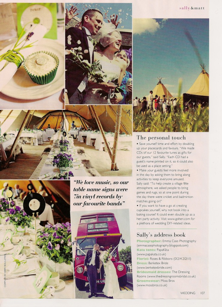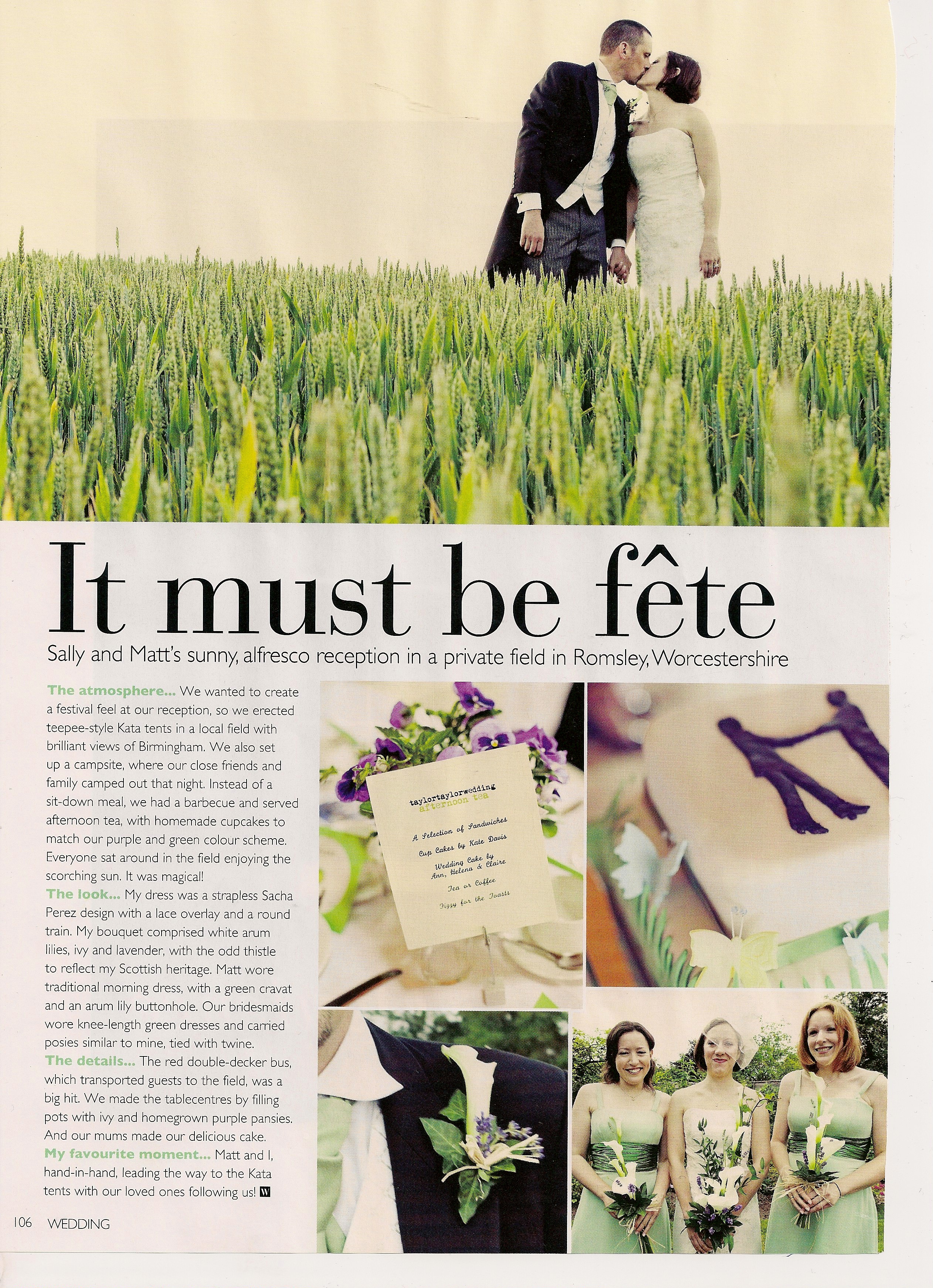 This months issue of Wedding Magazine see’s Sally & Matt Taylor’s elegant PapaKåta wedding reception featured in all it’s zesty green and purple pansy glory : )