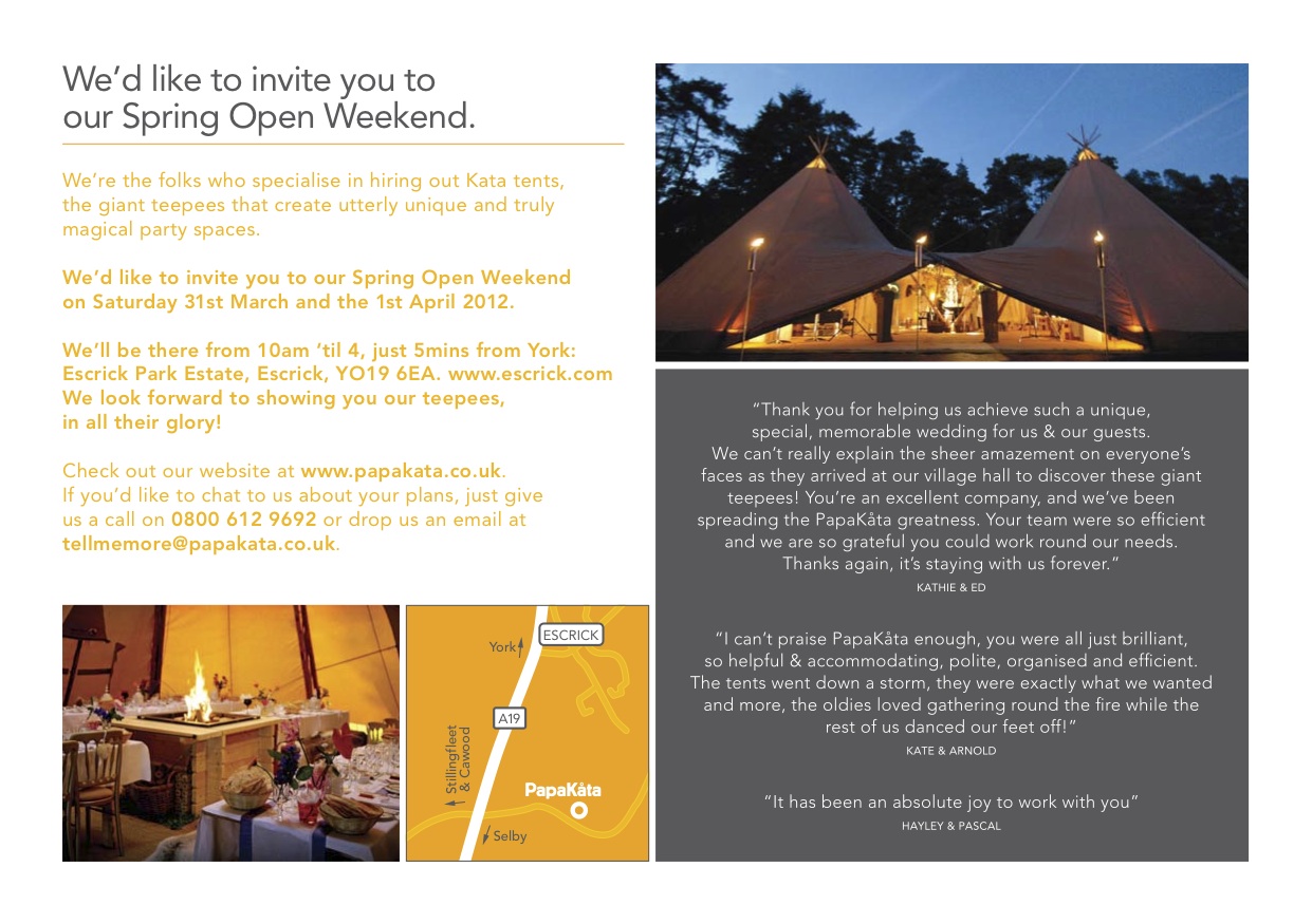 Alternatively if you’d like to pop along and see the teepees at your leisure, please do and we’ll welcome you with open arms and chocolate brownies from the Papa Cafe!