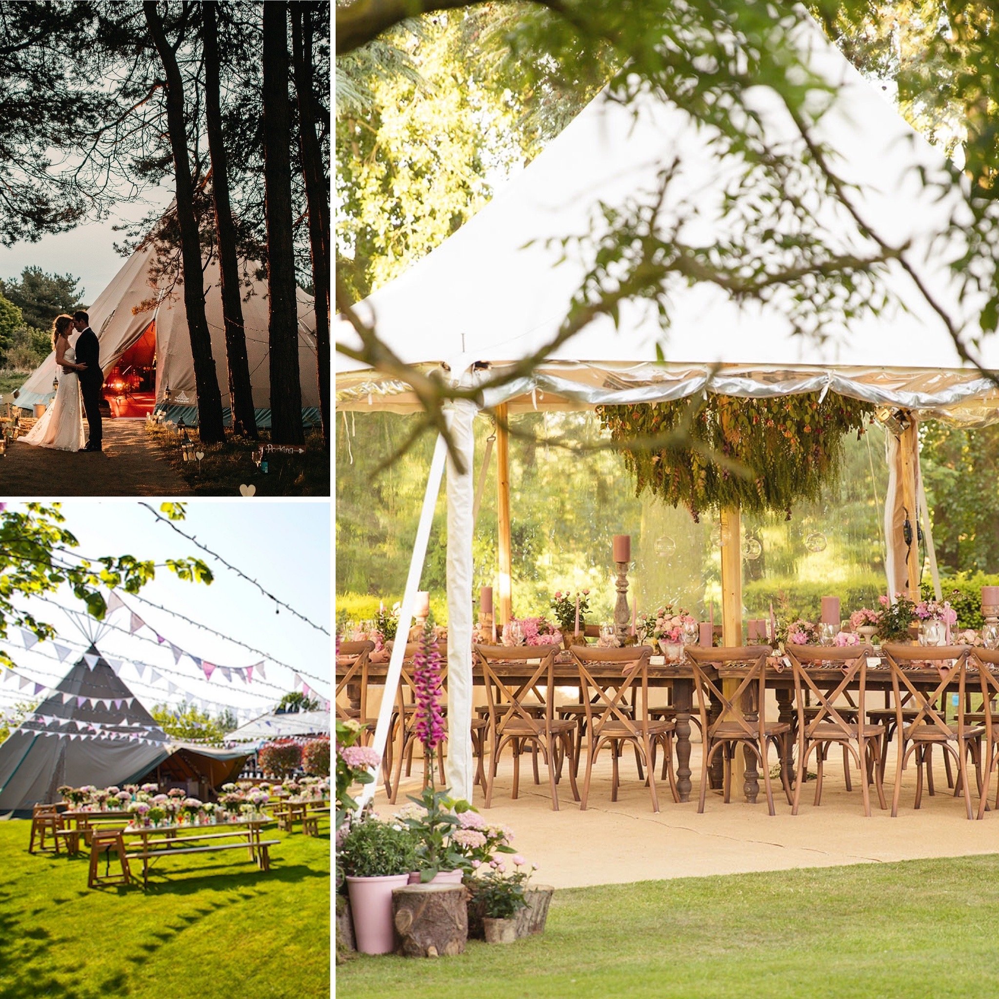 - An outdoor wedding at home can be so beautiful and unique. Our Sperry and Tipi tents can fit in spaces from 10m x 13m, meaning that smallish gardens can turn into the most unique wedding venue. And with current guidance, outdoors is the safest place for you and your guests to be.