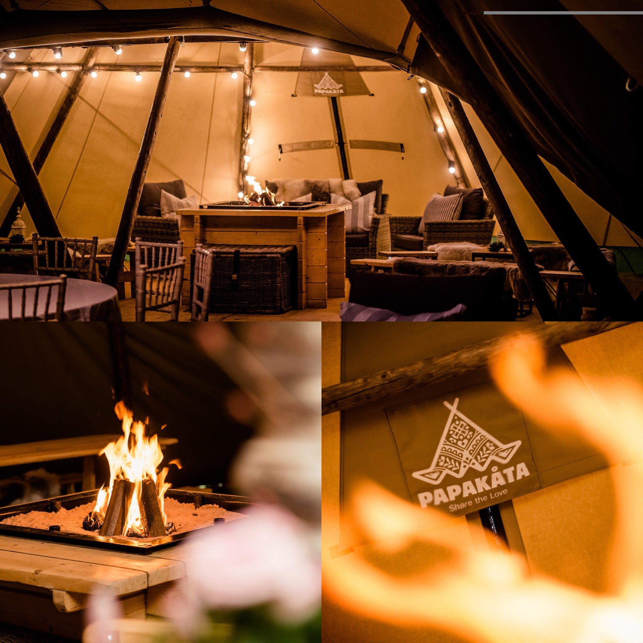 Our open fire brings warmth and a cosy glow to our Teepees. Captured here by Dominic Wright Photography