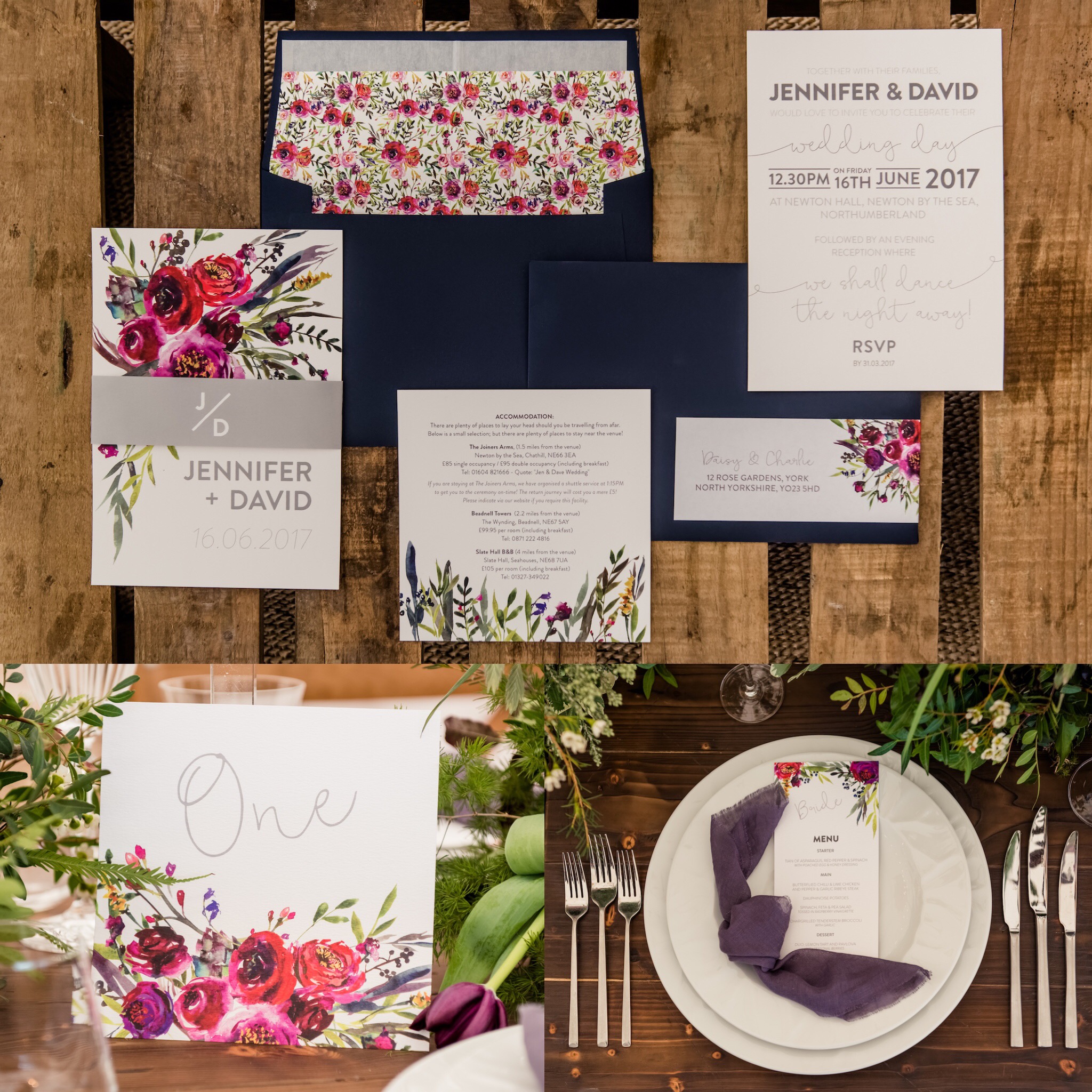 Further pops of colour came in the form of I am Nat’s vibrant stationery. With classic typeface and contemporary floral prints to give the perfect balance between romance and modernity.