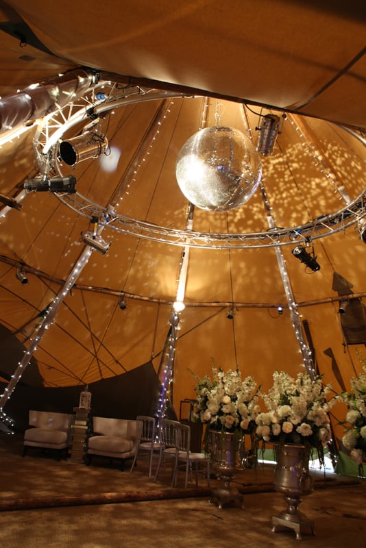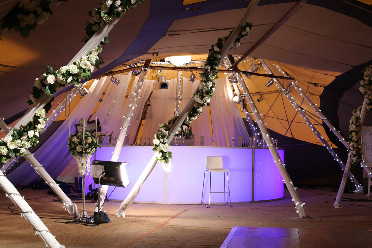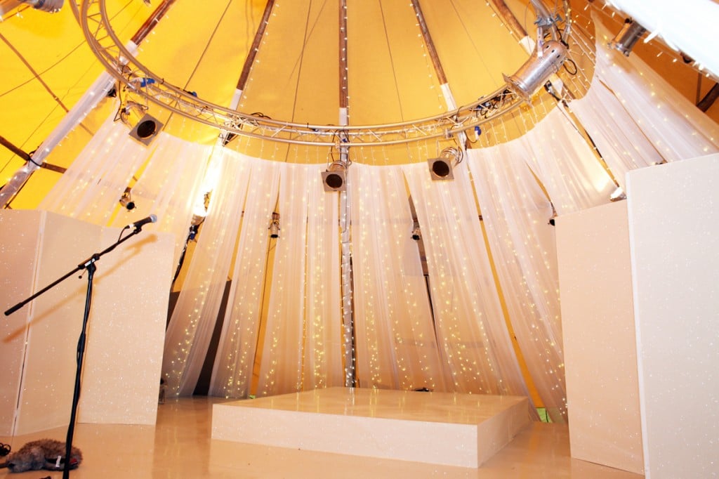 The ultimate diva sparkly stage and back drop, muslin drapes look beautiful and help to identify different areas within the teepees.