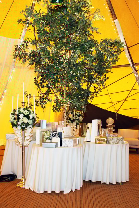 Bringing the outside in with a fairy light festooned silver birch tree, giving height to the centre piece and making a beautiful focal point for the present tables. A special shout out to Taransay Chisholm, the Art Director at Emmerdale, for her gorgeous ideas that we’ll be suggesting to our excited PapaKåta Bride, Grooms and Event planners for years to come.