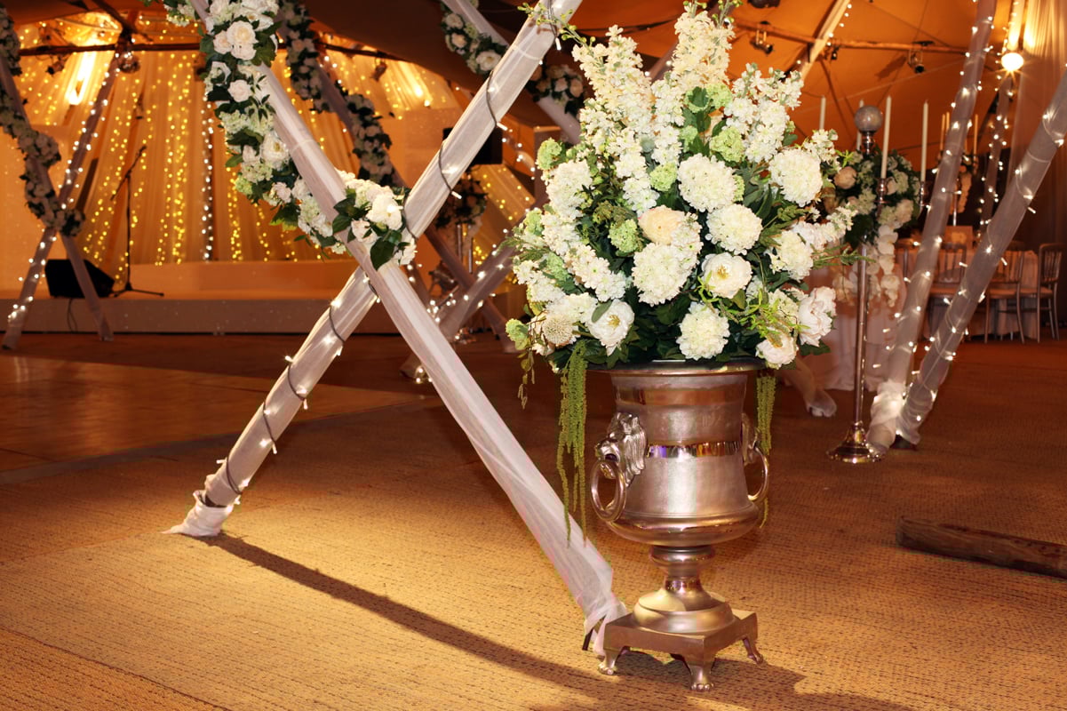 Candelabras and PapaKåta teepees poles adorned with flowers and white muslin swathes give these tents a beautiful finish. Of course there is the obligatory Emmerdale equipment in place for the Live filming of the 40th Anniversary episode.