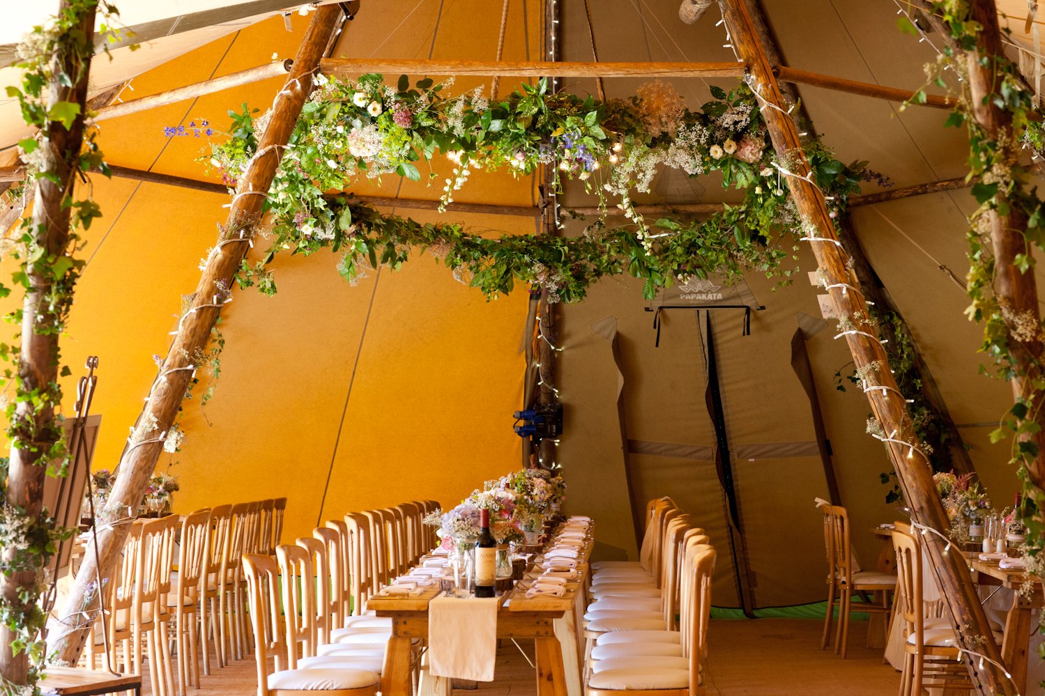 If cocktail’s aren’t your thing, other ways to help you to bring the outside in are with the introduction of trees, hanging arrangements and even cacti. Alternatively, allow guests the option to explore, encouraged outside by open Sperry or Teepee sides and a dedicated matted terrace, or a naked tipi! Relaxed seating and festoon lighting will provide guests with a quiet space to retreat and rest weary feet in nature’s surroundings and later under a starlit night sky.