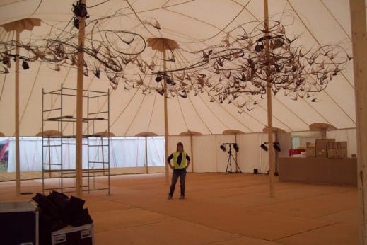 At the festival’s core, world-class chefs including Raymond Blanc and Angela Hartnett supply fine-dining experiences. Our largest Sperry tent played host to the long table banquets, and artist Celia Smith created a breathtaking new installation for the tent canopy. When guests looked up as they feasted on sumptuous food, they saw GULP* – which comprised a flock of 250 beautifully crafted swallows swooping and dancing over head. *Gulp is the collective noun for a flock of swallows.