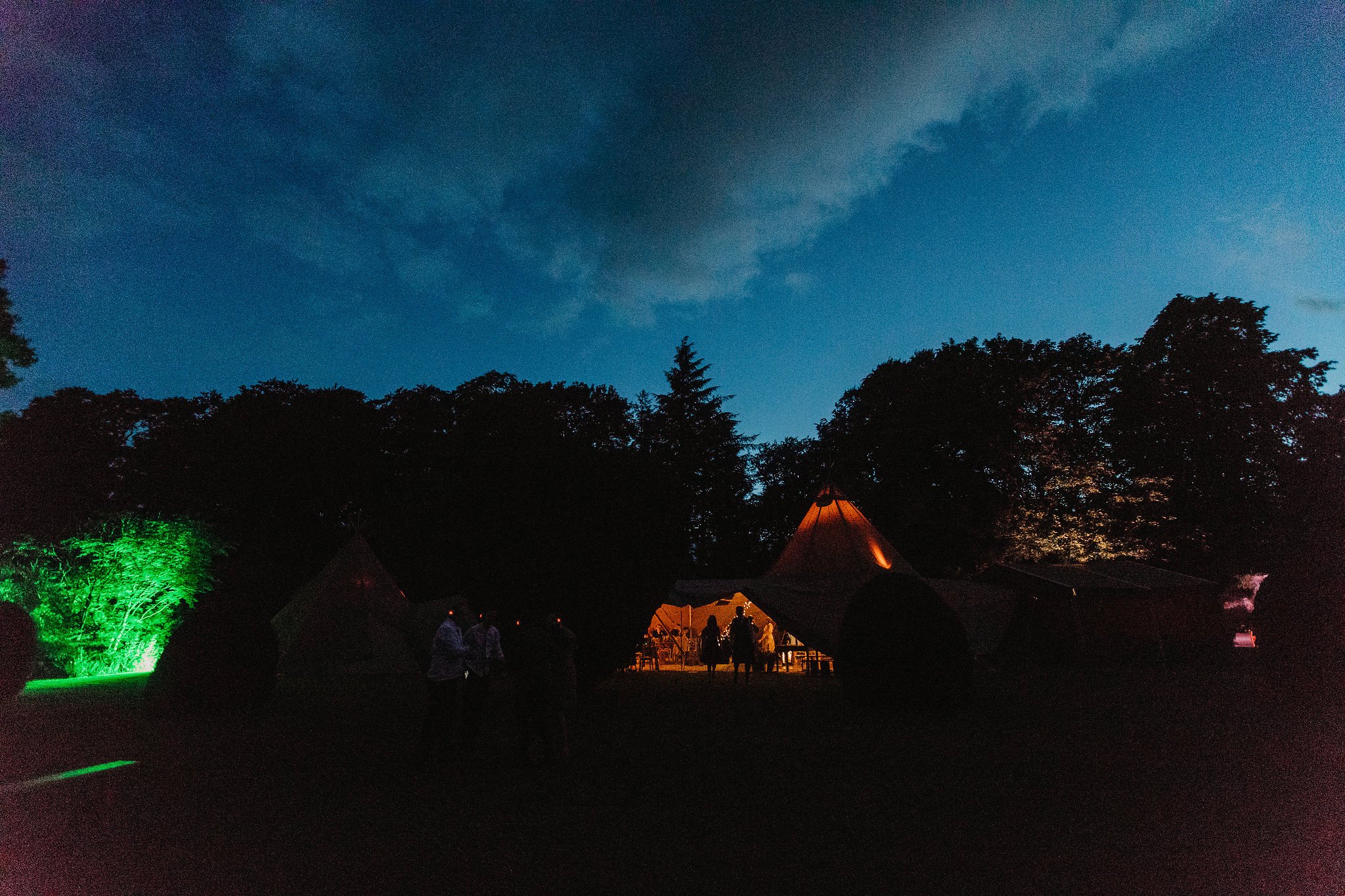 PapaKata Teepee wedding at Greenbank Gardens Scotland- Teepee Exterior at Night by Emma Lawson Photography
