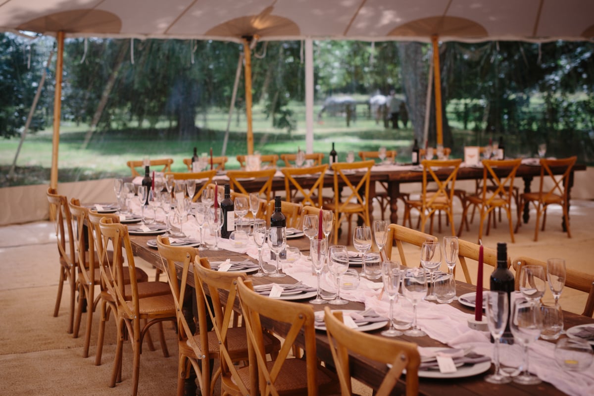 Dannii & Tom’s PapaKåta Sperry Wedding at Everingham Hall: Farmhouse Tables & Cross Back Chairs