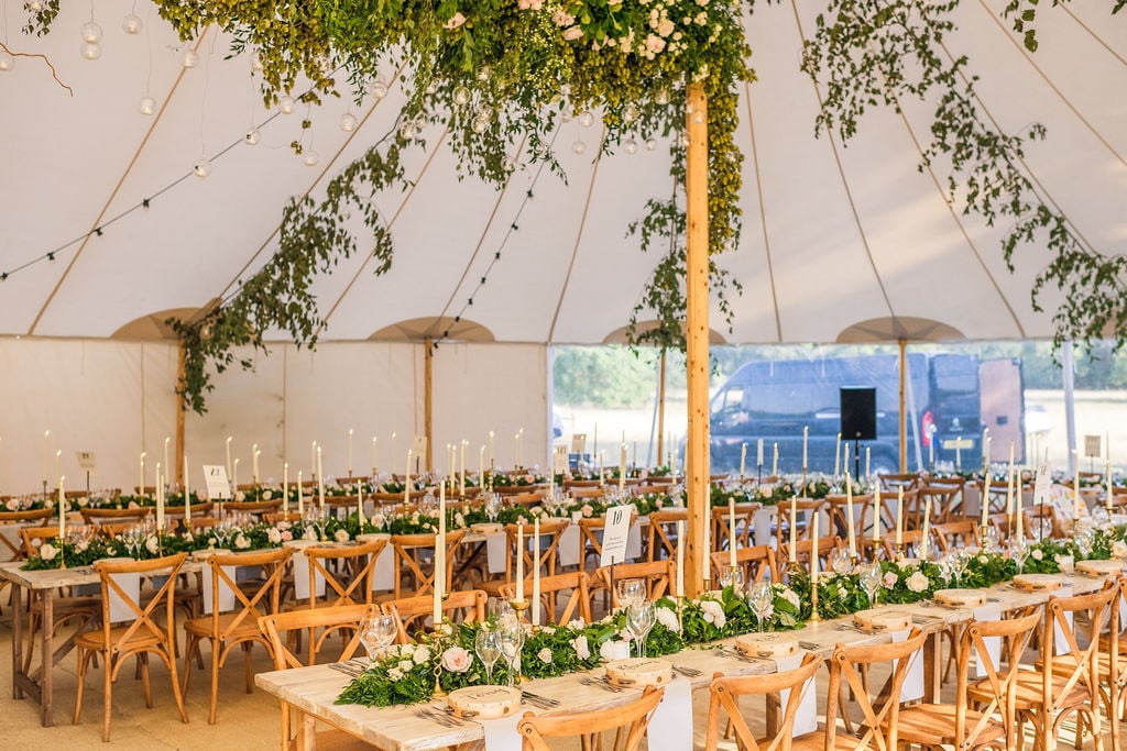 PapaKåta Couple Lucy & Martin’s Sperry Tent Wedding at Norton Hall captured by Dan Morris Photography – Sperry Tent Interior- Flowers by Fiona Perry Floral Designs